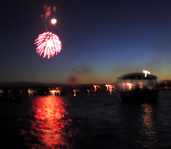 After the finale, there was applause all around. All boats sounded their horns (if they had one) and dispersed through the lagoons. On the way back we enjoyed quite a few more spontaneous private fireworks. As we got home, the night had deepened, still there were sounds of celebrations. Festivals, such a human thing. We would just take about any excuse, be it independence, new year, or someone's birthday, to celebrate, to eat, drink, and be merry. And fireworks somehow always make a festival seem official.