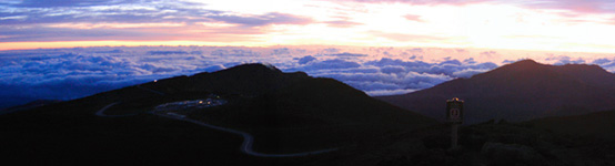 Day 3: We set a new record this morning -- by getting up at 3am! In the predawn darkness we drove up the volcano Haleakala, and due to the traffic jam (I'm not kidding!) we arrived at the summit just in time for the sunrise. At 10,000 feet, the temperature is 30 degrees (F) lower than at sea level. But we came prepared by putting on as many layers of clothing as possible. Standing at the summit surrounded by a sea of clouds, it felt like we were on an airplane at cruising height, except we were in open air! There was no land in sight except for the two big volcanos that is the big island of Hawai'i (over 13,000 feet high). I became aware of how wonderfully isolated we were geographically -- the most isolated island chain on earth. We were a tiny tiny dot in the vast Pacific ocean. The sunrise was magnificent, with the clouds constantly shifting in shape and color.  Surpringly, almost everyone left the minute the sun rose, leaving us with the crater to ourselves. We hiked briefly on the Sliding Sands Trail, a path curving down the desolate slope of the Volcano. It resembled a Mars scape: vast, jagged, an endless scene of red sand and rocks, empty of humans and most plant life. After the hike (more like a walk), we rewarded ourselves with 1). a nap in the car; 2). a delicious breakfast at the Kula Lodge; 3). a visit to the Lavender Farm. Leaving high country, we dropped by the windsufing mecca -- Ho'okipa beach -- to watch the pros brave the waves. The wind was blowing like hell here (actually it was everywhere on the island but especially here) and the waves were high. Having briefly tried my hands at windsurfing on our placid lagoon back home in Foster City (we do have lots of wind here though), I could not even imagine how hard it would be to do it here. I could only gaze in wonder at these people. They zoom across the waves like dragonflies, so beautiful and effortless. Well, another life time, maybe. Day 4: The day of diving, we were all a bit nervous: Chantal was getting certified, and we had not dived for over 2 years. But all was good and fun below the surface: we saw turtles, sharks, and various eels; an octopus sucked on my fingers; I even got my teeth examined by a cleaner shrimp! Here are the photos: Day 3 and Day 4